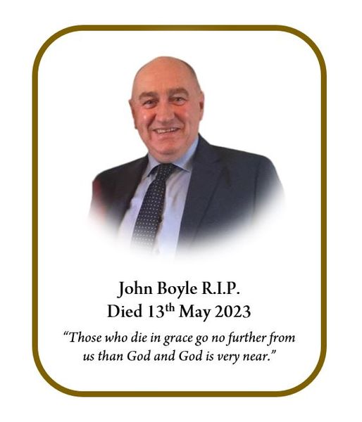 BOYLE John – (Ballymoney) 13th May 2023. Peacefully at hospital surrounded by his loving family. Late of ‘Ashleaf House’ 27 Drumskea Road, Ballymoney.