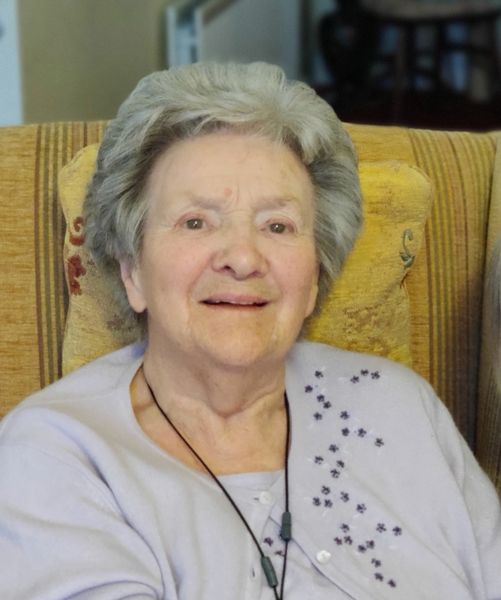 Family flowers only please. Donations in lieu of flowers, if wished, to Alzheimer’s Society Northern Ireland, 30 Skegoneill Street, Belfast, BT15 3JL. Queen of the Most Holy Rosary pray for her.