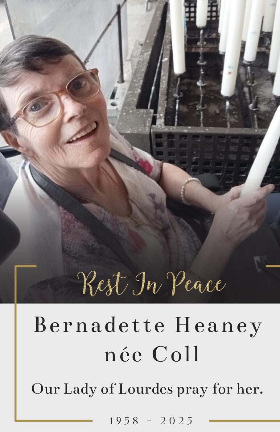 We regret to inform you that the death has taken place of Bernadette Heaney née Coll peacefully at Altnagelvin Hospital on the 31st October 2025. May she rest in peace.