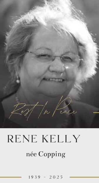 KELLY (née Copping) Rene, peacefully at home on 21st of October 2025. May she rest in peace.