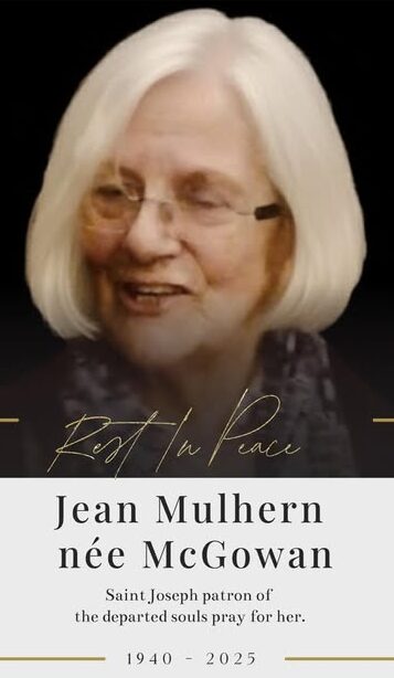 MULHERN (née McGowan) Jean, peacefully at home on the 17th November 2025. May she rest in peace. Late of 45 Glenbracken Drive, Feeny, Co Derry and retired District Nursing Sister in Derry City.