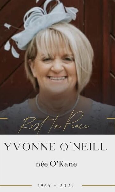 O’NEILL (nee O’Kane) Yvonne, at home on the 2nd November 2025, may she rest in peace.